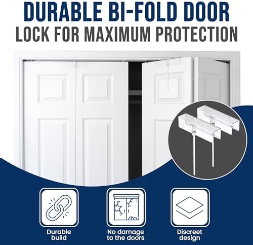 (2- Pack) – Safety Innovations Bi-fold Door Lock – Closet Protection Child and Pet Proof Bi-fold Door Lock – Tool-Free Installation – Unbreakable Clear Polycarbonate – for 1 3/8″ Thick Wood Doors
