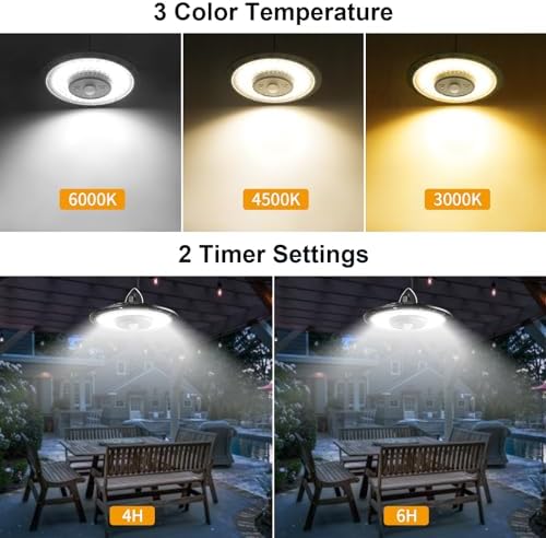 3 CCT Options & 2 Timers: 3 color temperature(3000K/4000K/6500K) available in the same lamp, whenever you want to change, just press the CCT button on remote control. Also features timer(4H/6H) and adjustable brightness, the gazebo lights solar can be set to suit different occasions and moods.