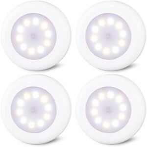 Product description STAR-SPANGLED 4 Pack 3.1 inch Dimmable Push Tap Lights, 3 Color Modes Stick on LED Touch Puck Lights
