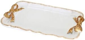 Warmtree Vintage Jewelry Organizer, Decorative Tray for Jewelry, Towel, Storage, Rings, Bracelets, Earrings, Cosmetics, Retro Design, Bow Decor Resin Plate Coquette for Room Decor, White