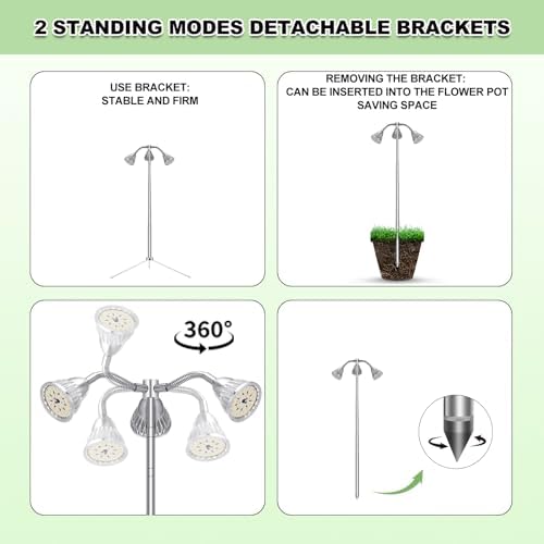 Multi-Functional Stand Grow Light: Compared to traditional grow light, our newest grow lamp feature a detachable tripod design, which You can insert it directly into a plant pot, or mount it on a tripod,adjustable height from 10 to 55 inches to meet the needs of different plants