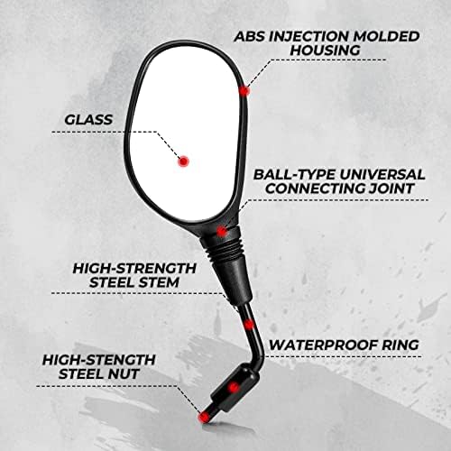 Adjustability and Stability: This side view mirror with 360-degree ball-type adjustments can help you find the most suitable angle. It is tested professionally to provide you with the highest levels of performance and availability under tough conditions keeping it away from vibration or looseness. The protective rubber sleeve design keeps the interfaces away from rain, making them more durable
